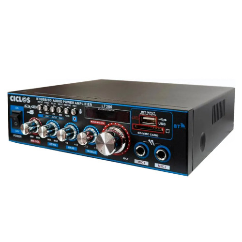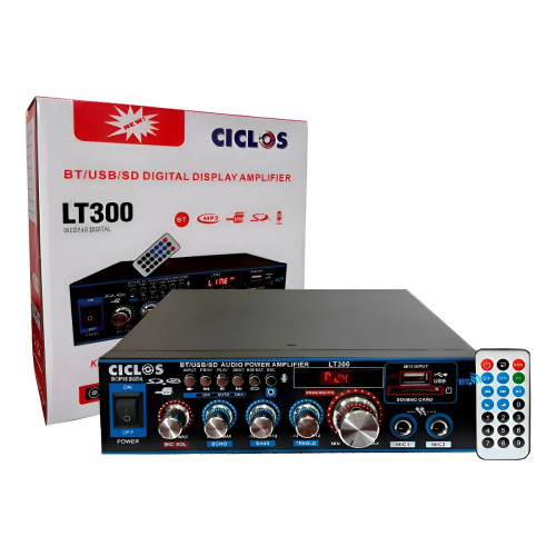 La consola amplificador de música LT300 de la marca CICLOS es la solución perfecta para quienes buscan calidad de sonido y funcionalidad. Con un dise?o compacto y un peso de 1.5 kg, este amplificador se adapta a cualquier espacio, brindando potencia y claridad en cada nota. Su pantalla LCD permite una fácil visualización y control, facilitando la navegación a través de tus listas de reproducción.