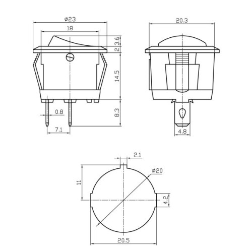 LLAVE TECLA REDONDA 12V 20A AZUL C/LUZ IRS101-8C