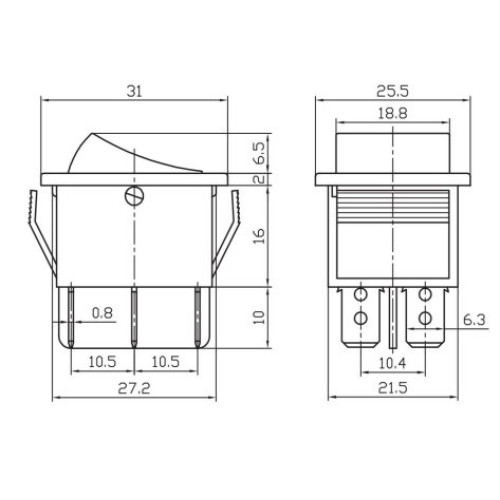 LLAVE TECLA DOBLE INVERSORA NEGRA 6 PATAS 15A 250V
