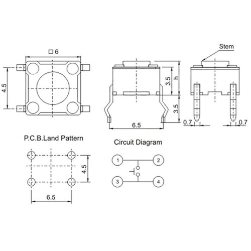 PULSADOR TACT SWITCH 5,1mm 4Pin 6X6mm X2