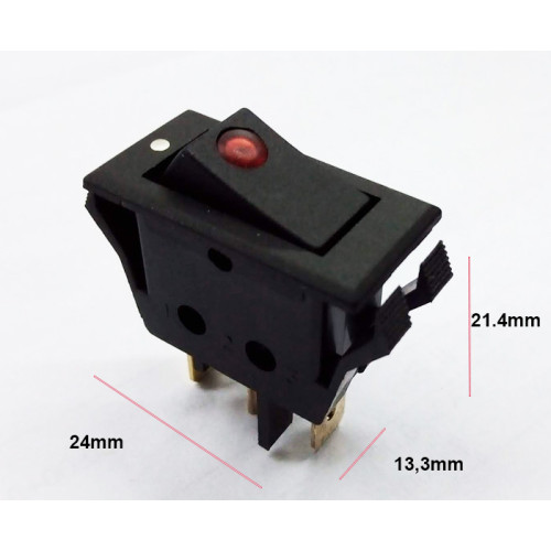 LLAVE TECLA SIMPLE INTERUPTORA RS101E 10A 2P CON LUZ ROJA 220V ON/OFF