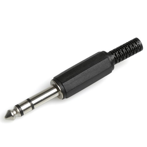 FICHA PLUG 6,5mm STEREO PLASTICO NEGRO C/COLITA
