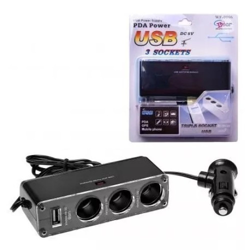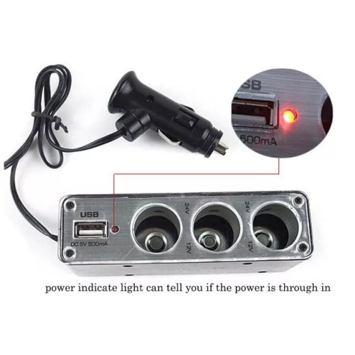 Adaptador Para Encendedor Auto 12v 3 Salidas 12v + Cargador Usb 12v-24v Wf0096