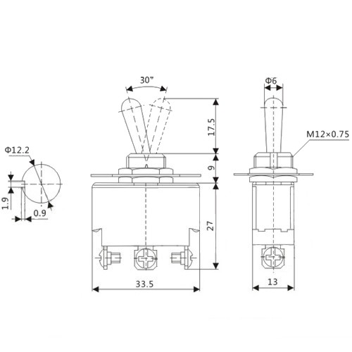 LLAVE PALANCA INVERSORA KN3-102 10A 3P ON/ON