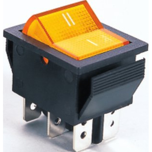 LLAVE TECLA DOBLE INVERSORA C/LUZ AMARILLA 6 PATAS 15A 250V