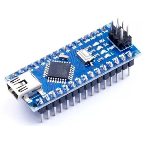 El arduino nano CH340 es la alternativa peque?a, completa y amigable con el protoboard, basada en el Chip ATMEGA328, al igual que sus hermanos de mayor tama?o. Mantiene características y funcionalidad muy similares al Arduino Duemilanove y Uno, solo que en un tama?o bastante reducido. No posee un conector de alimentación de DC y emplea un conector USB mini-B, en vez de el conector B estándar usado en otras tarjetas.